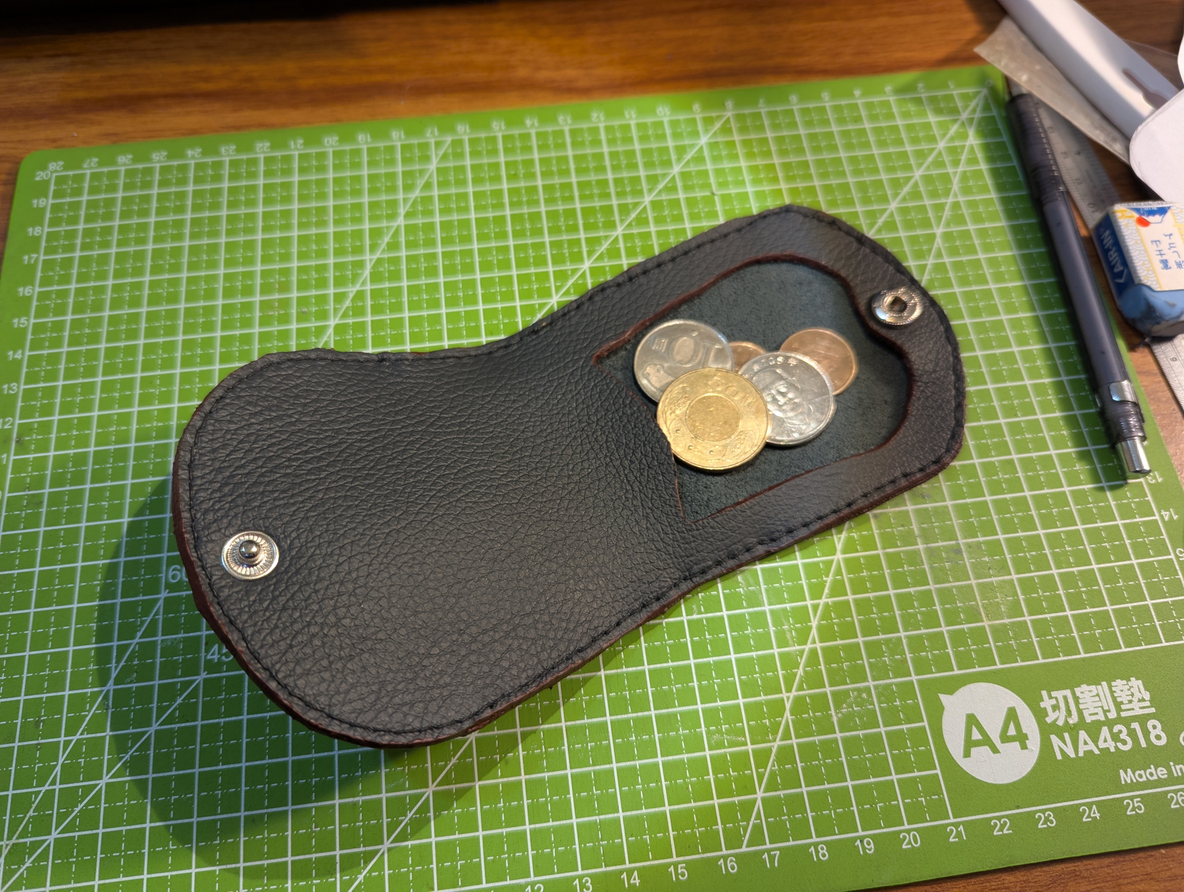皮革手作很療癒,也有非常多細節,這次加了皮友,硬是在零碎休息時間撈出家裡有限的工具材料,教學影片看了一次兩次甚至0.5倍速邊做邊看⋯裁皮片、摩邊、釘四合扣⋯甚至放飛自我亂亂玩😁