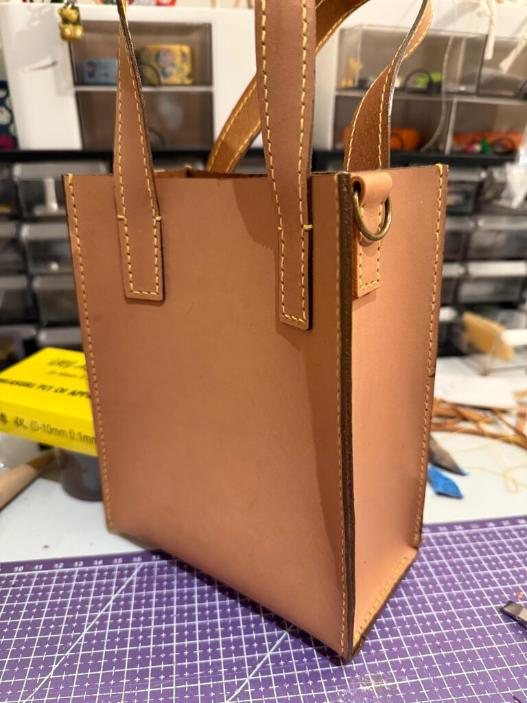 後來在吳軒老師這個教學網站開始後加入訂閱資深皮友的計畫,從簡單、基本的作品,每月每月開始累積與練功。在今年年中再度將這包款拿出來面對,雖然仍不完美,但自己知道,與第一次初做那時,進步太多了!再回到當初覺得挫敗的包款,真的不再是這麼難以跨越的存在。