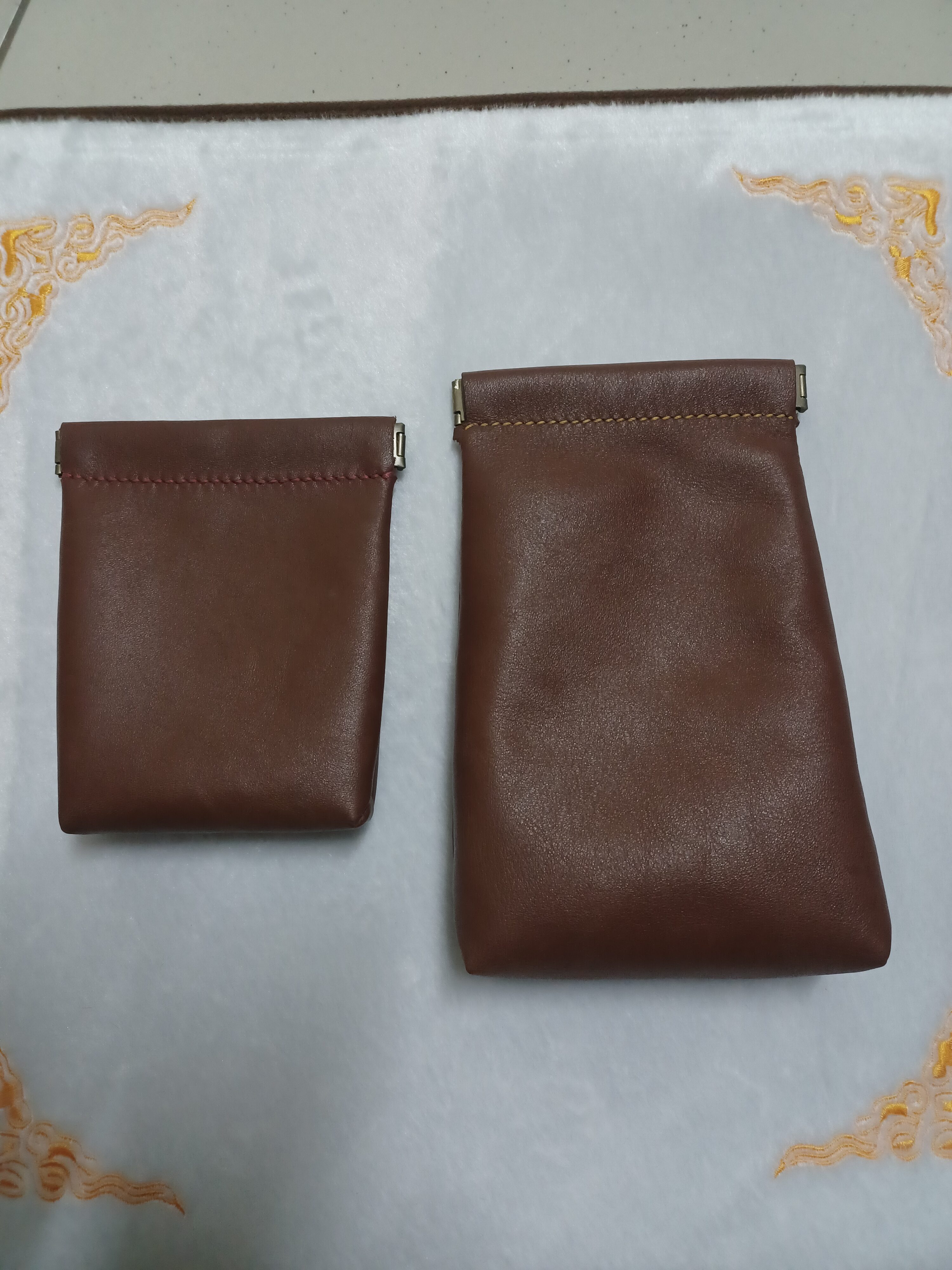 這次的課程有車反的技法,縫合的部份削薄可以有比較好的效果。以前曾經試著用削皮刀削薄皮革,但總是削得不好。近期研究了怎麼修整削皮刀,再次嚐試手工削薄,終於成功削薄皮革。可惜第一次削薄的範圍有些太少,感覺沒什麼效果。第二次重新打版做了比較符合使用需求的大小,也把削薄範圍增加,但成品在比例上有些怪異。看來就算有老師的版型可以做為參考,但還是有許多細節的部份需要多多研究。