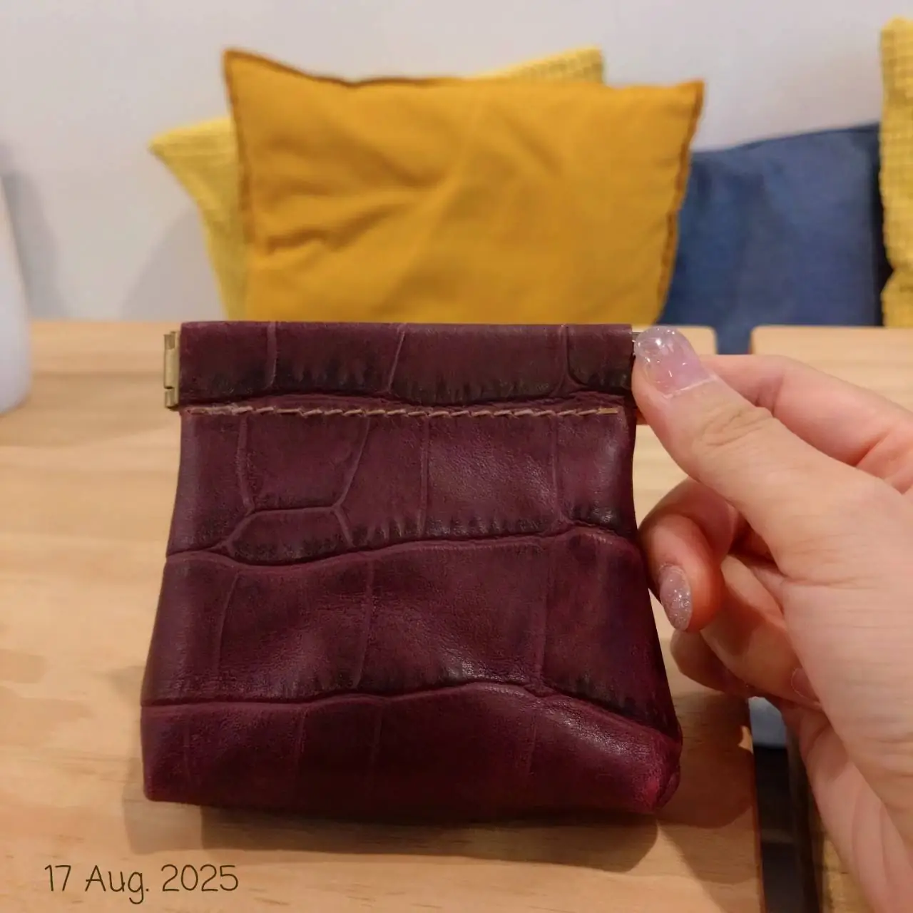 上個月手拿包課程結束後,手邊拿到一大片鱷魚紋皮革不知該如何是好,剛好這次課程是小物立刻著手用鱷魚紋來練刀。一個晚上搞定!