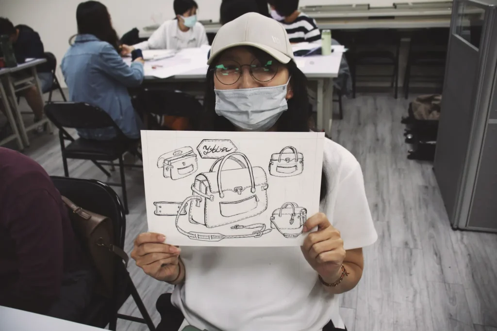 我的皮包專業是從設計與打版開始學習的。我在大學遇到好幾位影響我一生的師長,留學國外的教授、產業界的專家、熱心的研究所學長,他們都是我最尊敬的前輩,我至今仍感謝他們的教導。為此我特別卡了一堂體育課學分,讓自己延畢留在大學,只為能專心、持續在皮包領域進修學習。