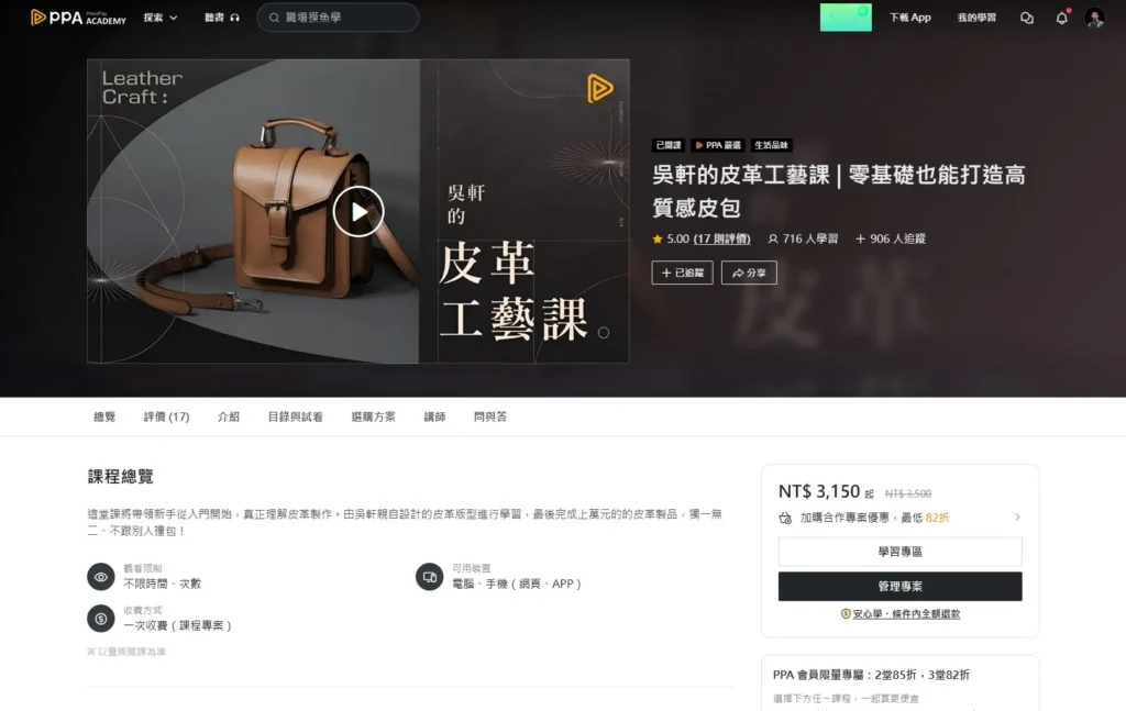 不過這堂課,後來變成國內銷量最高的皮革課程,也成為我建立官網線上平台的基礎。到現在,我還是會把當時學到的架構與經驗,延伸進每一堂新課程裡。