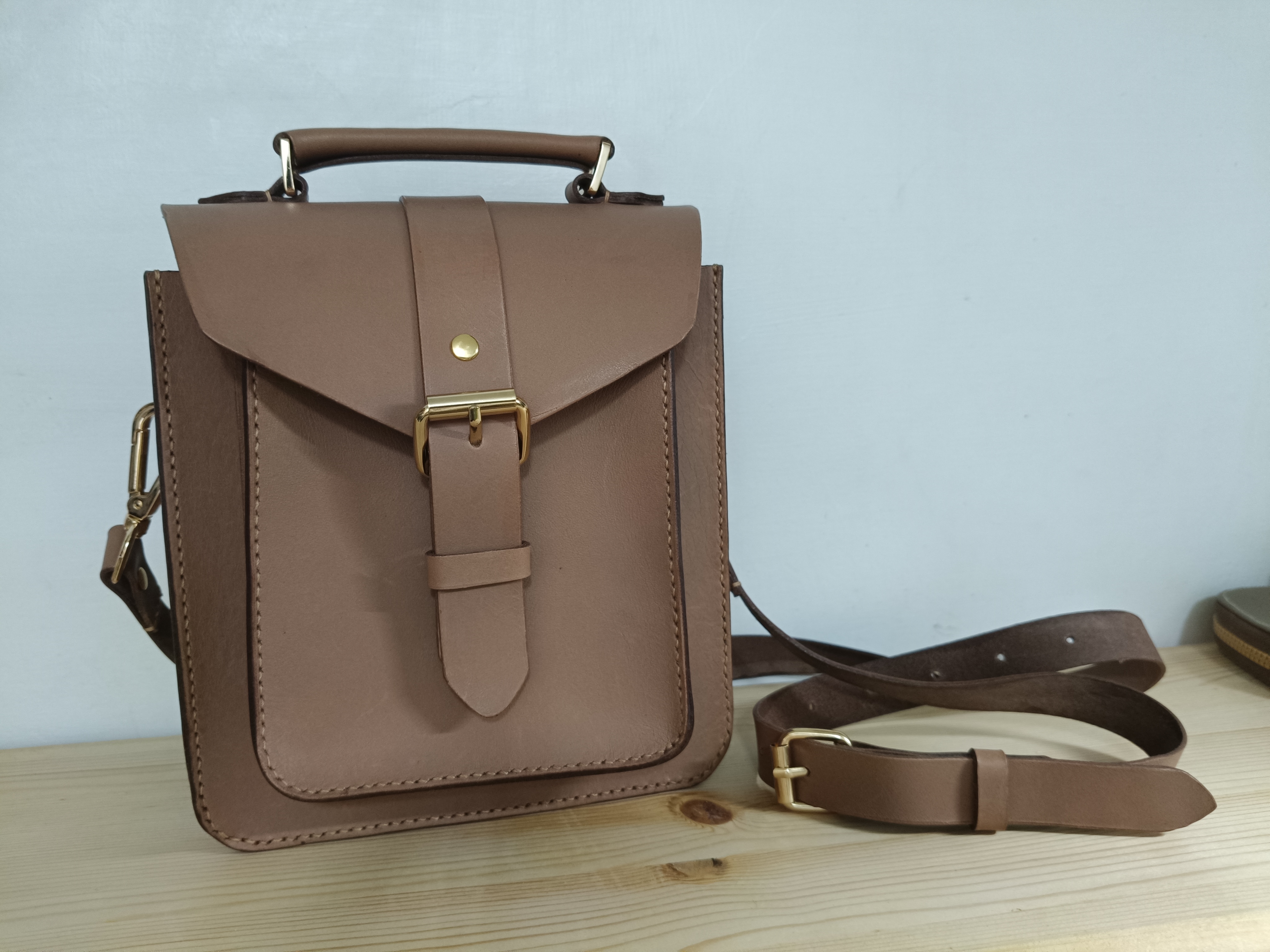 材料:皮革:應該是半植鞣約1.1mm;皮糠紙:0.4mm(只用在主體那一片);內裏:0.6