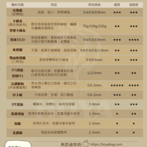 做一款包,不能只靠皮革與內裡。 真正能決定包體物性、立體感、與耐用度,是那些隱藏在皮革背後的輔襯料。 這一次十周年,我把自己多年製作包款時最常用的輔襯料,整理成一套完整的 禾亞聯名組合,讓你不用再東拼西湊,就能一次到手。 如果要談起吳軒十年的皮革之路,禾亞的 Andy 老師、呂老師,是我最早接觸的前輩之一。 禾亞本身專精於「鉻鞣流行皮包」的領域,不僅是業界公認的資深大前輩,更是我亦師亦友的好朋友與老師。這十年來,無論在教學、接案、還是專業材料的供應上,他們都維持著頂尖水準。 當年剛開始學習時,就在他那裡得到許多啟發與幫助;後來無論我在經營自媒體、還是製作各式作品時,禾亞始終是我最常選購的愛店。地點在新北市永和,是一家你走進去就能感受到專業氛圍的店家。 這次十週年,我特別邀請禾亞參與,提供市面上最齊全的輔料、襯料與各種皮革周邊用品,讓更多人能體驗到專業工藝背後的基礎支持。 「吳軒愛用輔襯料聯名套組」集合了我在製作大型流行包款時最常用的各種輔襯料。 例如: 這些材料看似隱形,但卻是作品質感的關鍵。 平常購買可能要大卷大卷買,對多數人來說可能會過量、又佔空間,因此我請禾亞幫我搭配成合適的小幅組合,讓你能一次備齊,實際練習與製作都能派上用場。 好,大概就是如此啦! 很多人剛開始做包,常常只注意到皮革和版型,但真正做下去就會發現:包包要有支撐、能耐用、使用起來符合預期,其實靠的都是這些看不到的輔襯料。 少了它們,作品可能會塌、會易損壞,效果就是撐不起來。 我這次把自己最常用的組合整理出來,就是希望你不用再花時間去摸索,或是為了買一點點材料卻得扛一整卷回家。 這套組合剛好能應付多數常見的包款練習,省事,也不會浪費。 對我來說,這些輔襯料是我一路走來必備的工具,所以才會在十周年的時候,特地和禾亞一起把它們配成一組推薦給你。 因為我知道,當你想要做出「更像一顆包」的作品時,它會真的幫得上忙。 祝你玩皮愉快! 吳軒▍商品特色