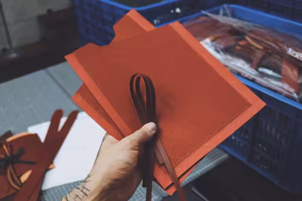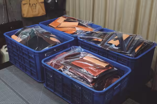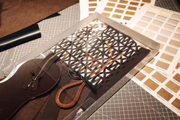 - 刀模精準裁切的皮片,且已預先削好皮革邊緣